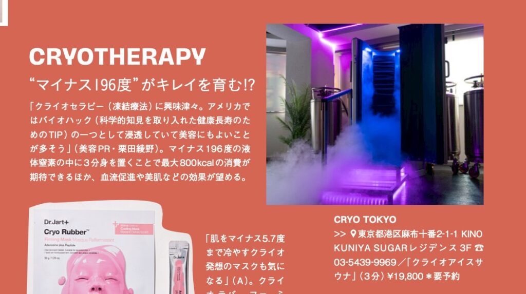 誌面では、クライオセラピーへの注目が高まる背景や、海外でのトレンド、